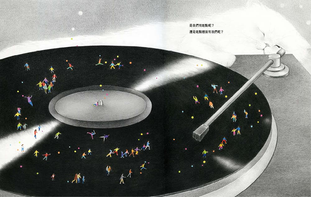 以及紅色斑點,女孩發現這個世界上存在著各種不同顏色的斑點,